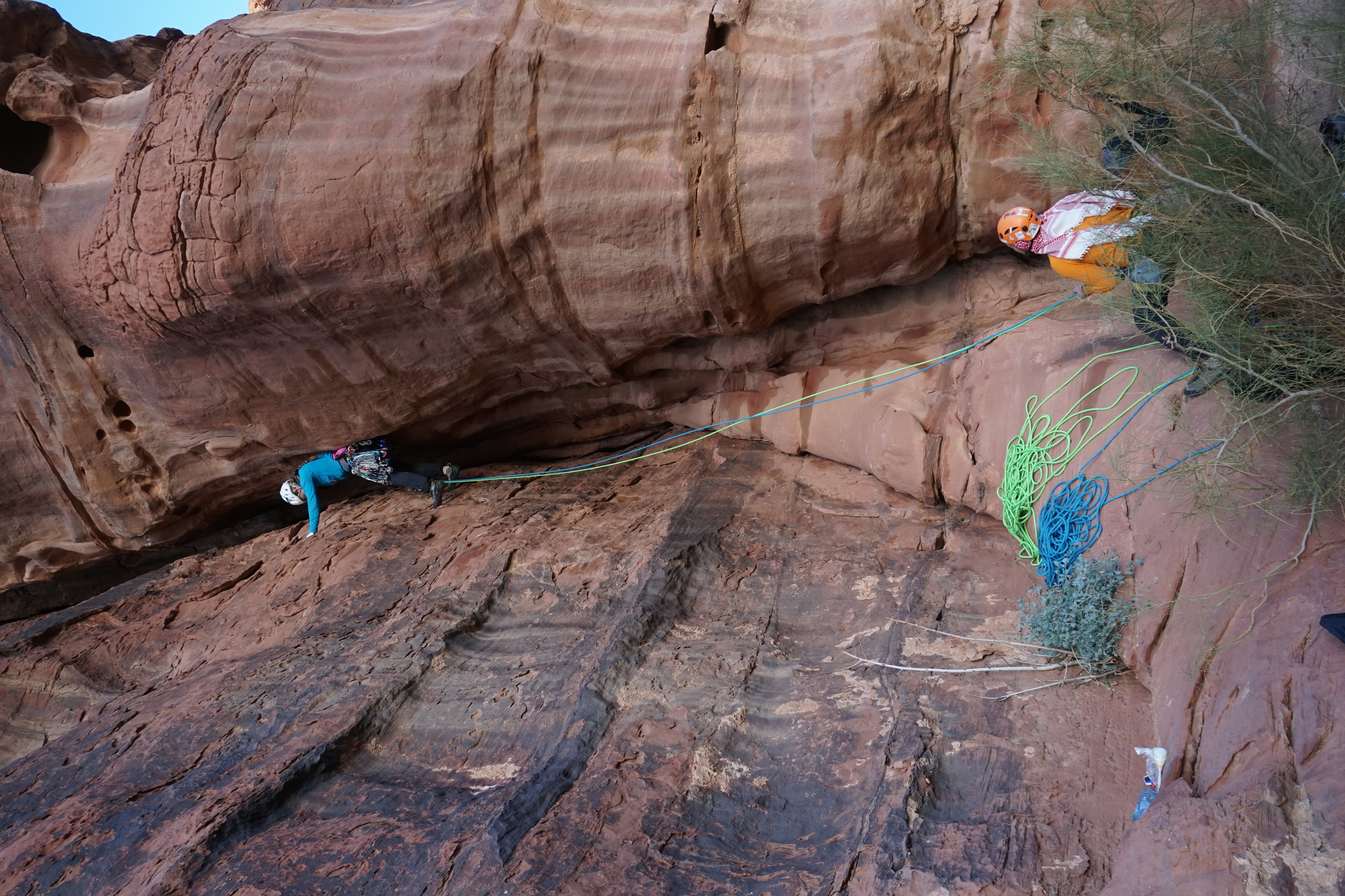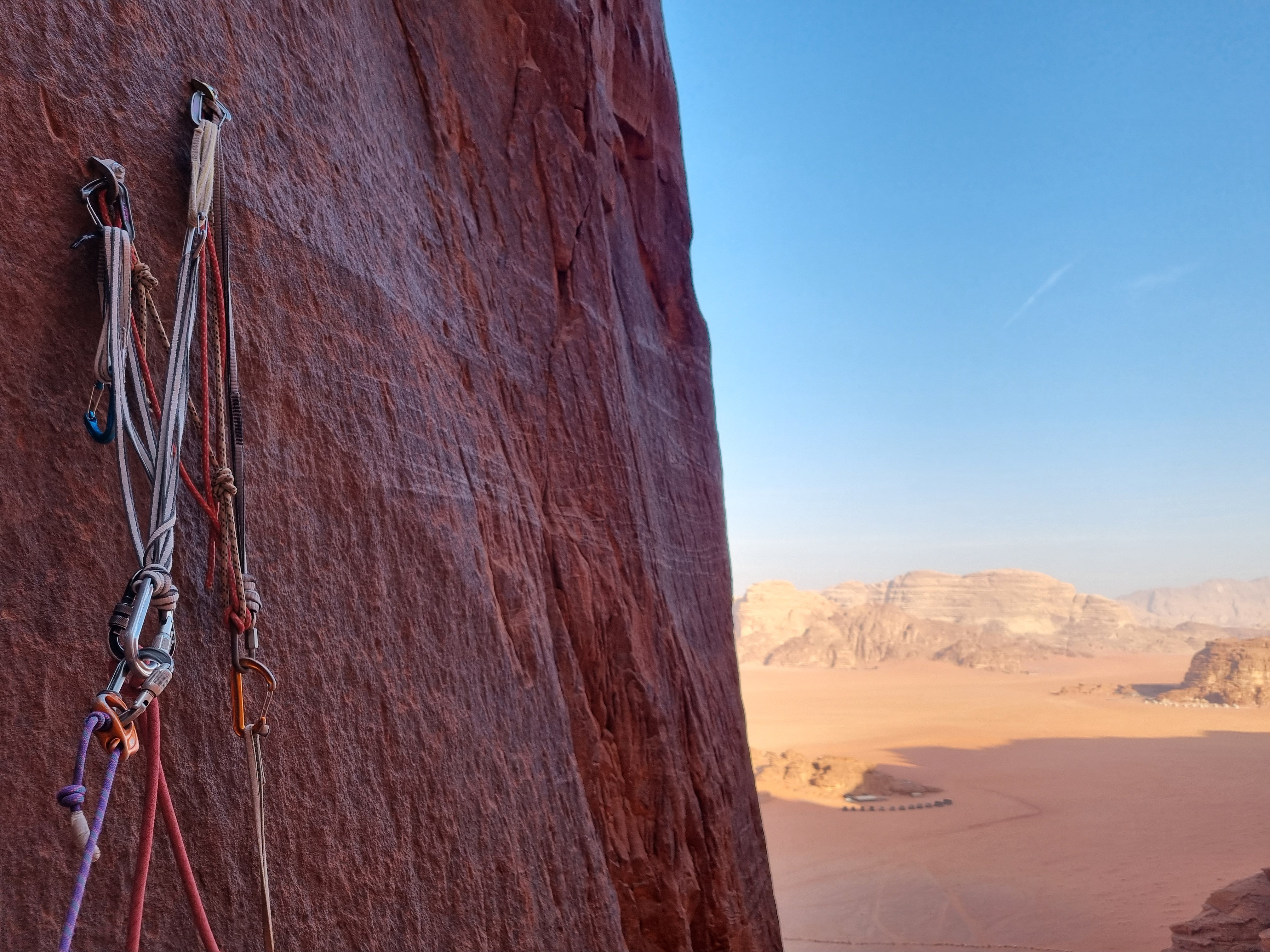 - Ekstra tau (60m er bra). Det er vanskelig å finne klatreutstyr i Jordan og sandsteinen sliter tau fort.