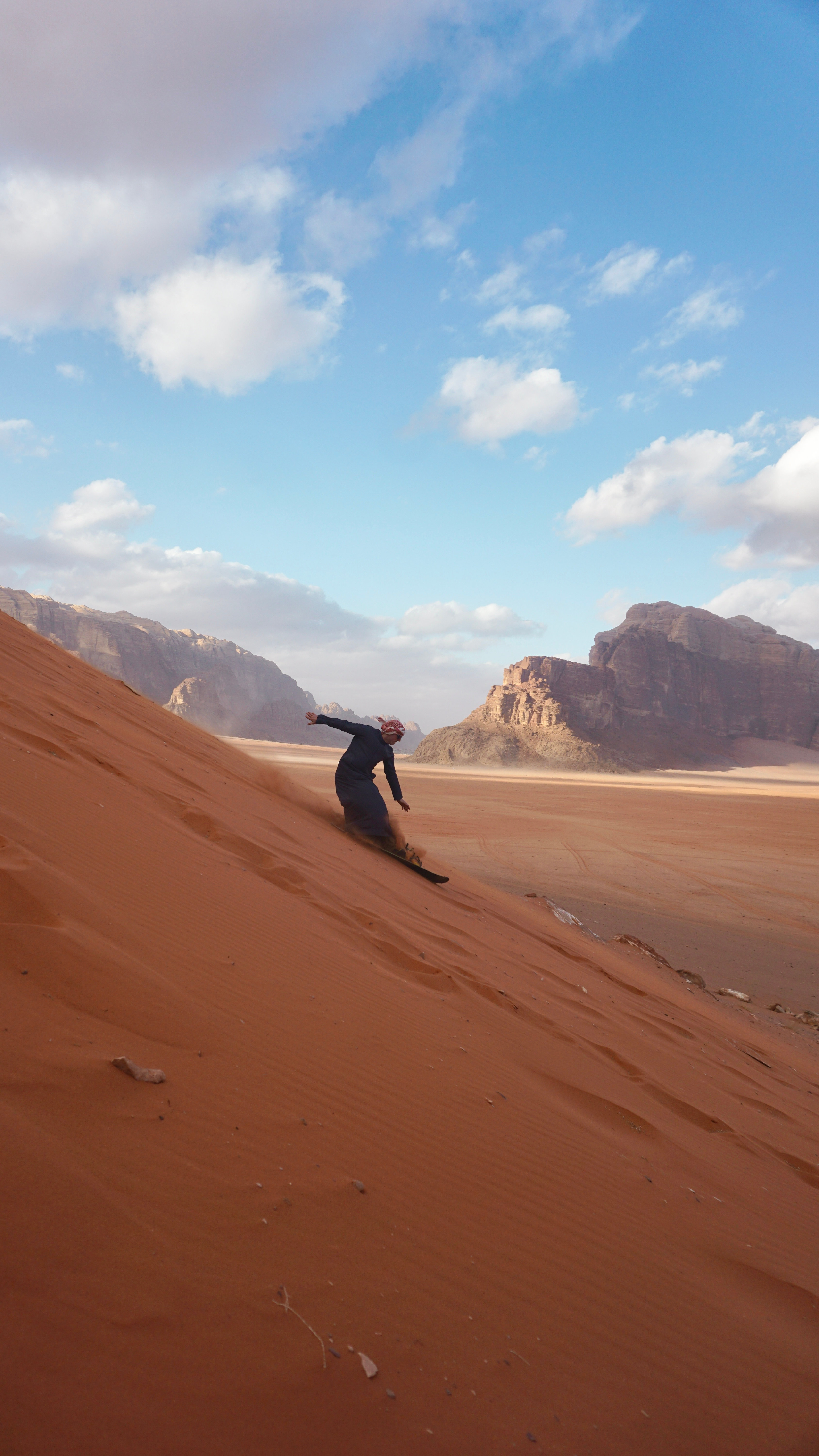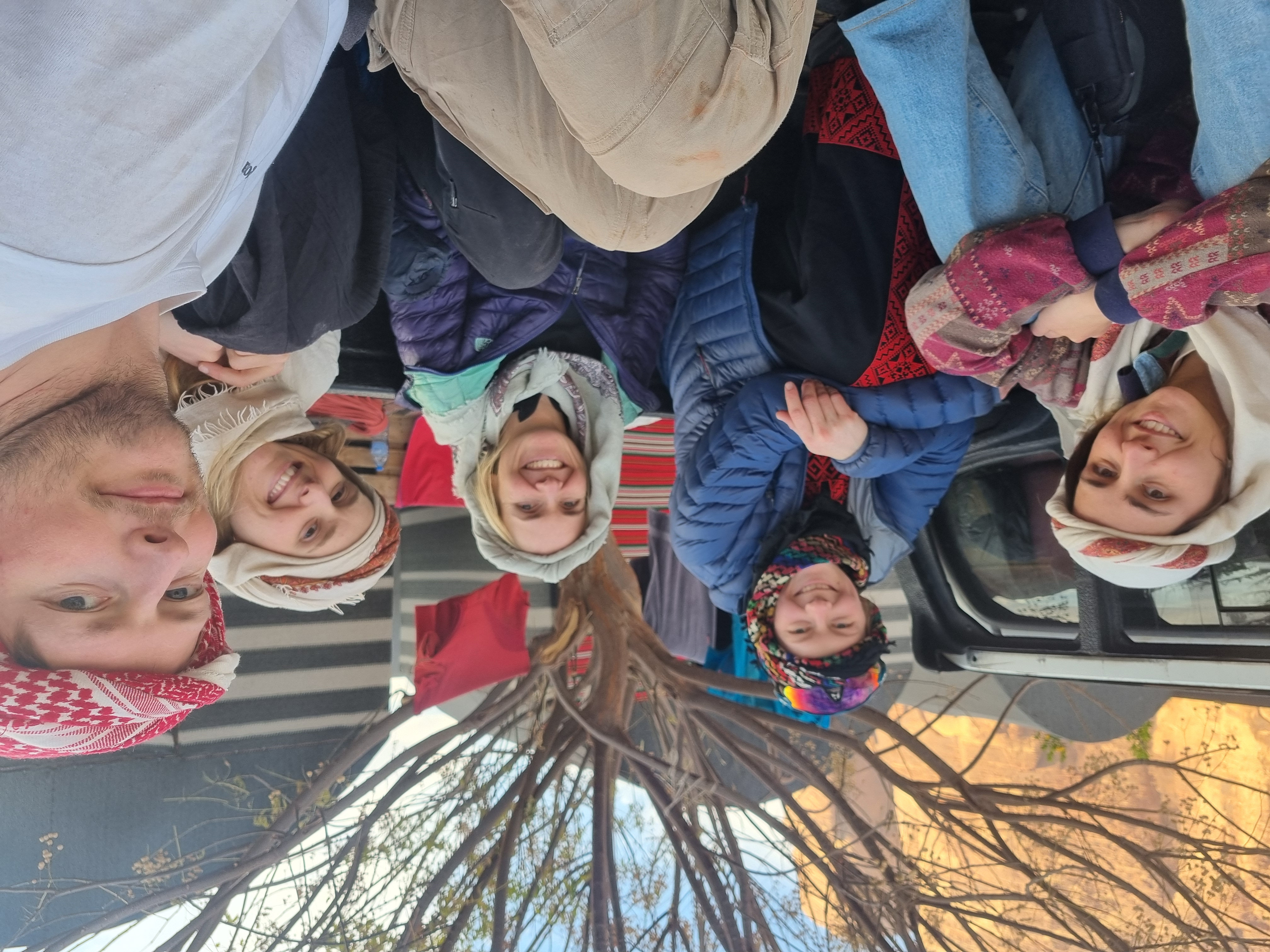 Alarmen går halv sju, og jeg er raskt på benene. Utrolig gira på å prøve ut et nytt fjellområde, og med en selvsikkerhet som avspeiler at hjernen ikke helt er våknet enda, flipper jeg teltduken opp til mitt første møte med ørkenregn. Slik regn har karakter som foreldrene til barneskolevenner, 20 år senere - de annonserer sin ankomst på helt feil tidspunkt og blir så lenge at man langsomt innser at man ikke kommer til å få gjort noe vettugt i dag. Heldigvis er morgenbordet dekket - flatbrød, hummus, labneh, grønnsaker, Nutella, Za’atar, og kremost. Vi eksperimenterer lenge med å brygge den lokale kaffen på en måte som gir minst mulig kardemommesmak - uten særlig hell. Nederlaget på klatrefrontent åpner muligheten for å utforske shoppingmulighetene i byen, og benytter Atayeks lasteplan-taxi til nærmeste bruktbutikk. Vi forstod ikke hva innehaveren sa, og han forstod ikke hva vi sa, så alle parter var fornøyde med forhandlingene. Vi kommer tilbake til middag (kylling og ris) med turbanskjerf og kjortler, overbeviste om at ingen kan se forskjell på oss og de lokale.